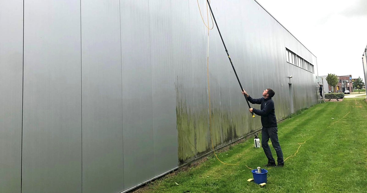 Deze gevel van Autoschade Van Kalsbeek is weer prachtig mooi schoon geworden. Heeft u ook een bedrijfspand dat een opfrisbeurt kan gebruiken? Neem dan contact met ons op!